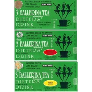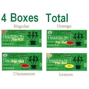 "This review is from: 3 Ballerina Tea Extra Strength All Natural Dieters Drink Sampler Value Pack (1x Lemon, 1x Cinnamon, 1x Orange, 1x Regular Flavors) - 72 Tea Bags in 4 Boxes (7.52 Oz) (Health and Beauty)